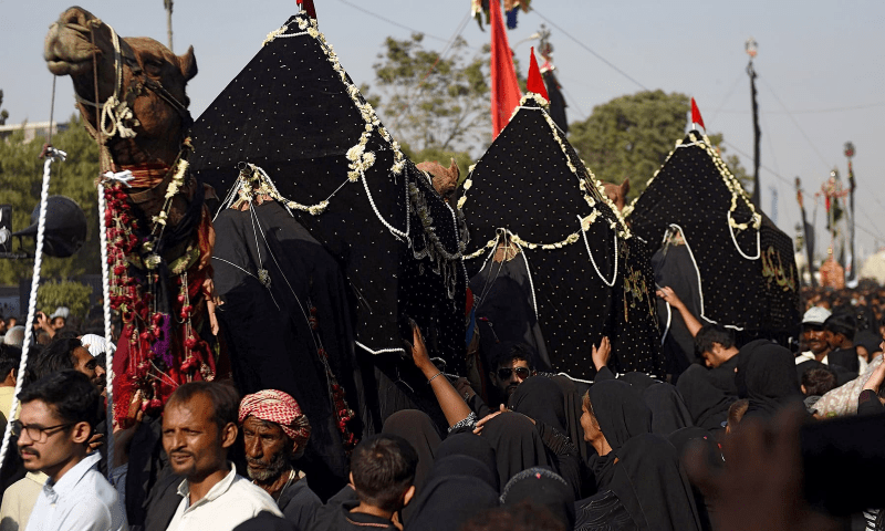 “Todas as estradas que cruzam as principais rotas de procissão em Karachi permanecem completamente fechadas e medidas extraordinárias também foram tomadas em torno do Nishtar Park”, acrescentou.