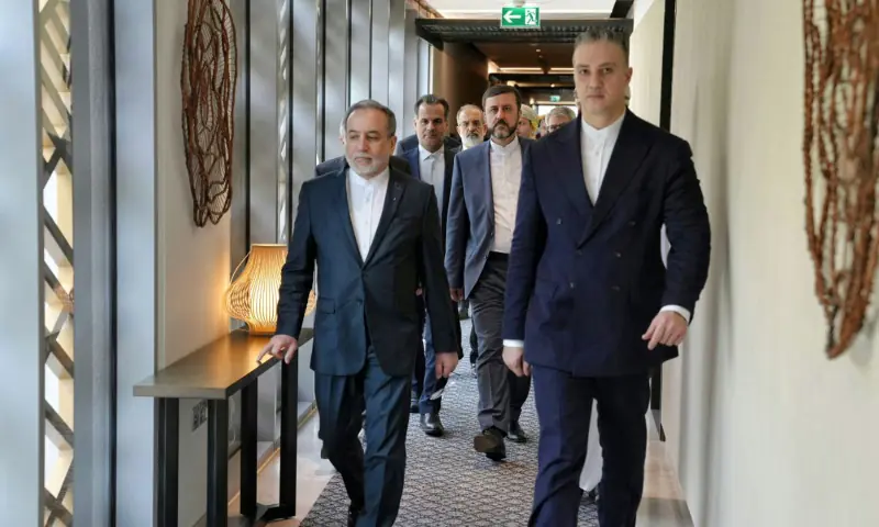 O ministro das Relações Exteriores iraniano, Abbas Araghchi, e sua delegação acompanhante partem para o local da reunião em Omã. -Reuters