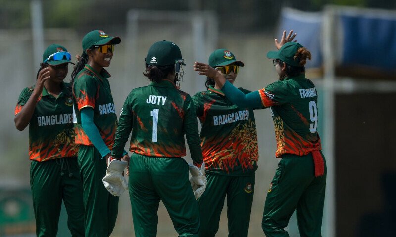 Sidra foi preso pelo wicketkeeper Dillala Aktor no dia 18 e foi jogado pelo spinner Rabeya Khan. No entanto, Muniva e Aliya combinaram -se para adicionar 74 corridas de 97 bolas ao terceiro postigo para garantir uma vitória esmagadora para os anfitriões. Muniva fez oito quatros. Destruiu seis e seis, Natalia Perbias (não 13) ajudou o Paquistão a alcançar seu alvo sem mais perdas.