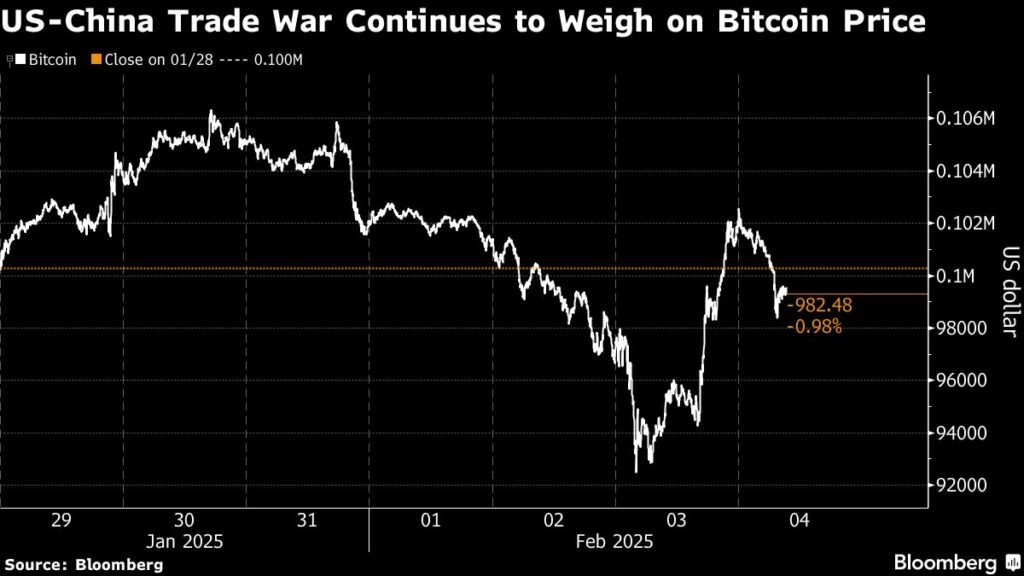(Bloomberg) -BitCoin e outros ativos digitais enfrentaram uma nova pressão de vendas porque a duas maiores economias do mundo intensificou a tensão comercial entre o mundo, e os Estados Unidos e a China impôs novas tarifas umas sobre as outras.