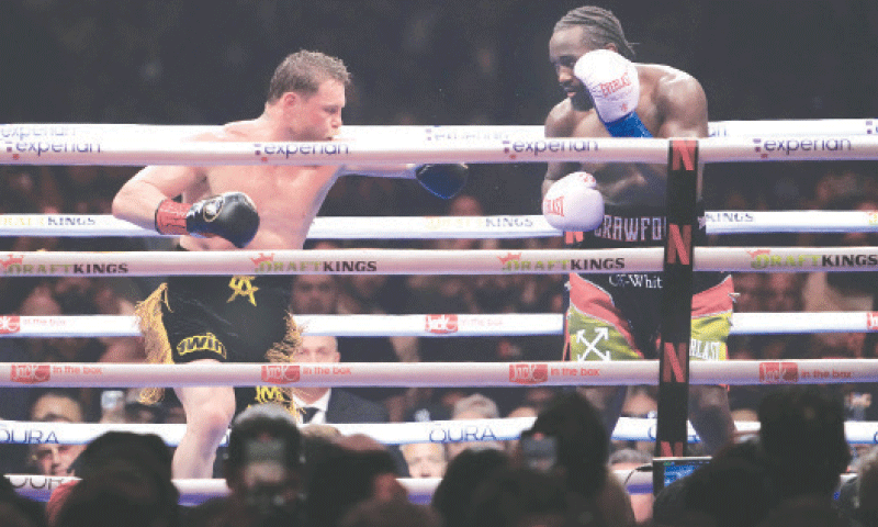 Alvarez, a maior estrela do boxe na última década, simplesmente não conseguiu alcançá -lo. Crawford usou seus golpes e conseguiu uma combinação com Vinging em Crowing Ground depois de derrotar o campeão.