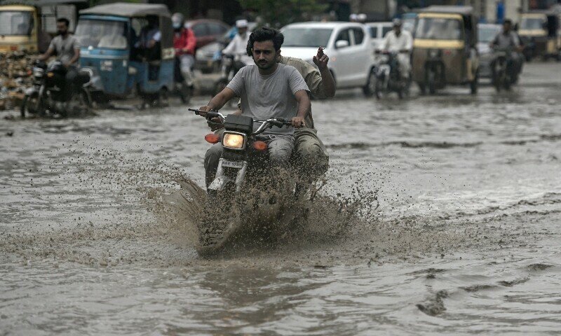 À medida que a água da chuva se acumula em estradas escavadas perto de Tahirvilla, o tráfego se move no ritmo do caracol. Os motociclistas estarão encharcados na chuva na II Chundrigar Road. E o carro está preso em um buraco na área de Sharifabad.