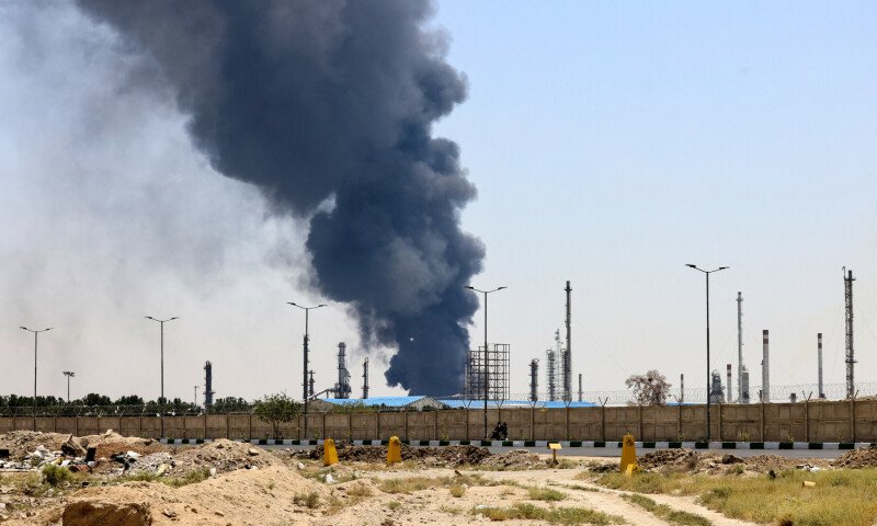 Imagem do cabeçalho: Fumaça pesada e fogo sobem acima de uma refinaria de petróleo no sul de Teerã depois de ser atacado por um ataque israelense em 15 de junho. – AFP