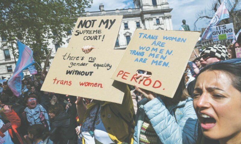 LONDRES: Milhares de pessoas se reuniram no centro de Londres no sábado em favor dos direitos trans depois que um tribunal inovador decidiu sobre a definição de “mulher”.