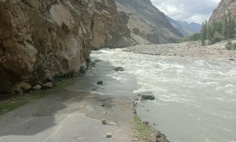 Em Garmit em Gojal, Hunza, um poderoso rápido foi desencadeado por derretimentos glaciais acelerados na noite de terça -feira, passando por Jukalnula.
