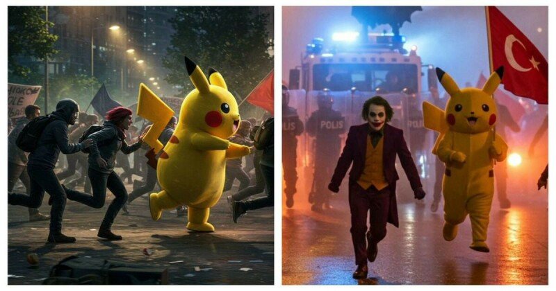 Os manifestantes de Pikachu, que se aplicam aos protestos de Istambul, não são mais apenas pessoas em fantasias. É um evento simbólico e surreal separado de seu contexto original. Imagens geradas pela IA do Joker dissipam ainda mais a realidade, tornando o protesto uma visão da mídia, em vez de atos puramente políticos.